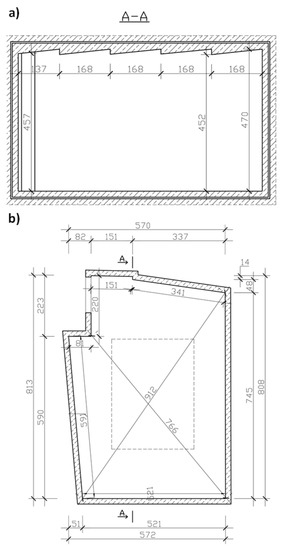 Reverberation room: (a) cross-section of the reverberation room; (b) reverberation room projection. [16,19].