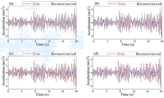 True and reconstructed response signals of S9 in the noisy environment with 40 SNR. (a) S-GRU NN; (b) GRU; (c) LSTM; (d) CNN.