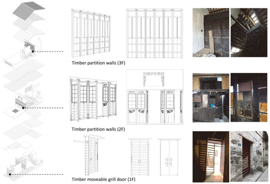 Field studies were conducted to measure and redraw the layout and details of the study building. Some construction elements and materials with specific functions or decorations were recorded and integrated into 3D models as well. Since the house was built over 90 years ago, some renovations or changes had been made in different decades. Field investigations were also encouraged to analyze the changes following the changing residents, activities, and modern living requirements [46].