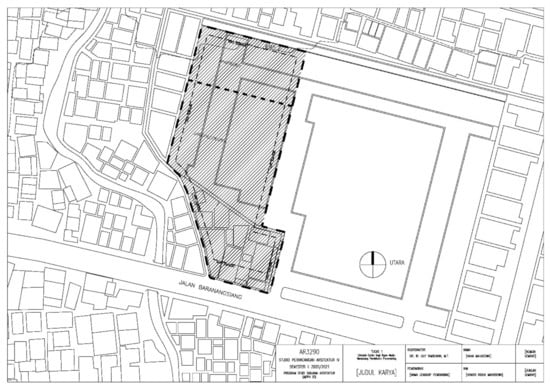 In the first project, students designed a lifestyle center (LC) building facility in Bandung. This project stressed the place-making issue by developing a safe and comfortable place for the people of Bandung with facilities such as retail spaces, convenience stores or minimarket, ATM center, cafe, restaurant, and supporting facilities. The overall site area was approximately ±6200 m2, including the site used for the second project, as seen in Figure 3. Furthermore, the course expected students to design a building through form and spatial composition and integrate them with site context, functional, and constructability aspects through this project. The course coordinator formulated studio objectives—derived from the goals of the curriculum, compiled in the second column of Table 1, and student performance criteria (SPC)—based on the accreditation quality standard that students must fulfill to help supervisors measure student achievements, further defined in Table 2. For final design submission, each student must submit a physical design study model on a scale of 1:200 using monochrome-colored materials.