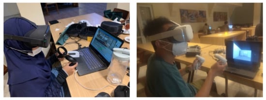 From a technical perspective, VR has been proven to be a reliable and stable technology and helped them facilitate model exchange. They found that VR technology can extend students’ learning processes and improve their motivation and awareness. VR provides “being there” with immersive interaction between students and their design works. It is vital because the architectural designer must consider behavior, cognitive outcomes, and users’ subjective experiences when evaluating a building design using VR [,], primarily when focused on building usability []. Tsou et al. [] proposed an integrated system supporting architectural design education, which lets users explore, discuss, and manipulate 3D objects within the VE. Users operated the system using a VR controller, addressing many issues during the trial.
