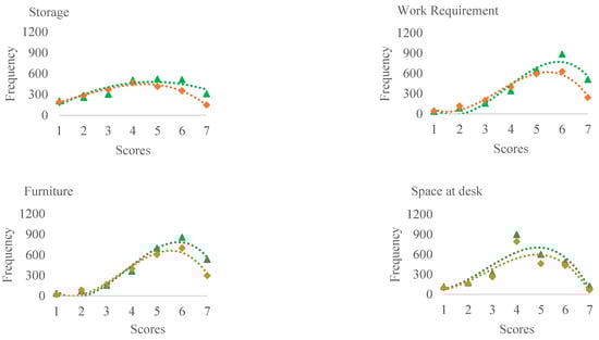 Table 5). Storage and desk space are useful for the ergonomic comfort of office users. While sufficient storage allows users to store and maintain important documents, a defined desk space enables focus and attention to the task. The ergonomic importance of these parameters relates to occupant comfort and productivity in the workplace. For instance, in one study [