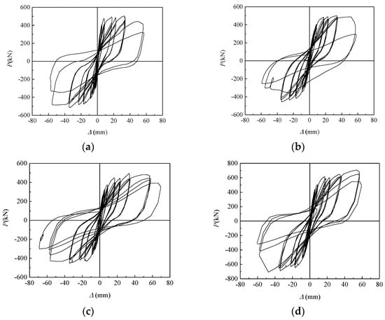 Hysteretic curves of specimen. (a) SW1; (b) SW2; (c) SW3; (d) SW4.