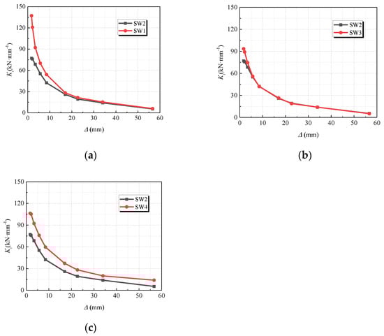 The stiffness degradation of each specimen is shown in Figure 18. It can be seen from the figure that: