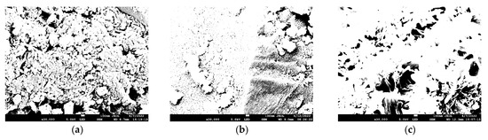 Microstructure diagram after the binarization process. (a) SRB-1. (b) SRG-1. (c) SRL-1.