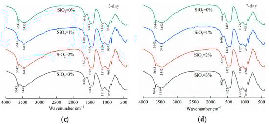 FTIR spectrums. (a) Cement grouting materials without the N-S, (b) CRTS at 1-day, (c) CRTS at 3-day, (d) and CRTS at 7-day.