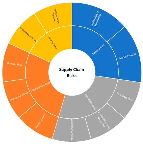 Increased globalization and high regard for innovation have made modern supply chains (SCs) more complex, uncertain, and interdependent. This has resulted in widespread interrelated risks with respect to inter and intra-organizational perspectives []. This interconnectedness and advancement in the global economy unfolds numerous benefits and ensures better living standards in various developed countries. However, it has intensified the SC risks to a greater extent [].