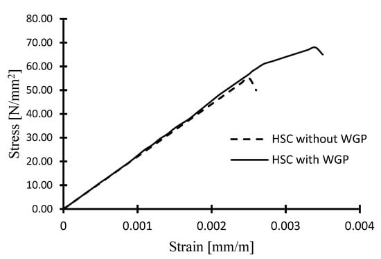 12] when replacing cement with 10% WGP, the increase in concrete compressive, tensile, and flexural strengths were 16.56%, 7.16%, and 6.57%, respectively. However, in another experimental study [
