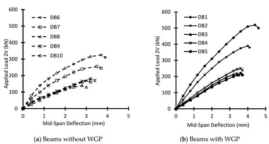 14]. It was found that reinforced concrete beams having WGP exhibited good resistance, acceptable flexural performance, and improved strength capacity compared to beams without WGP. The results revealed that the ultimate load of 10% and 15% WGP beams were higher than that of the control beam by about 18.25% and 26.5%, respectively. Deep beams, which have a relatively small span-to-depth ratio, are commonly employed as a transfer girder in high-rise buildings. In some cases, web openings are needed to implement some utilities. Experimental research has been carried out on the behavior of reactive powder concrete deep beams with openings externally bonded by carbon fiber reinforced polymer strips [