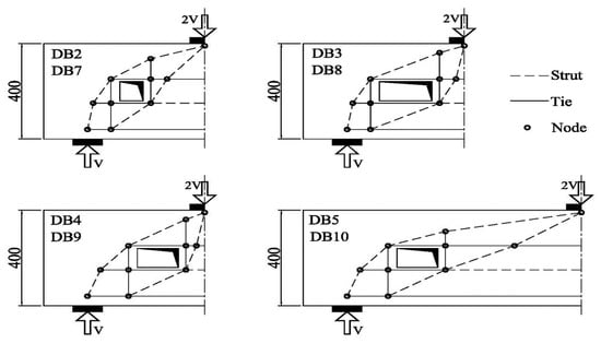 20]. It was concluded that the STM provides a satisfactory decrease bound assessment of the deep beams with openings’ load carrying capacity. The openings also have a considerable impact on the stress paths, creating zones of tension strains at the top and lower corners of the opening.