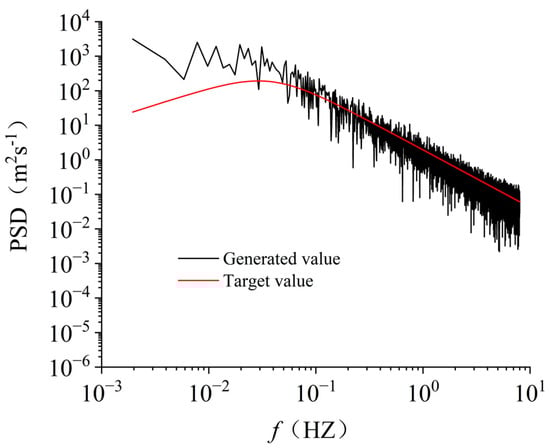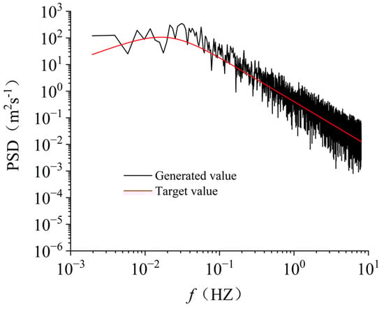 Figure 4 and Figure 5 are the time history of downburst wind speed and the comparison of power spectral density and target spectrum at 80 m height respectively. Figure 6 and Figure 7 are the time history of ABL wind speed and the comparison of power spectral density and target spectrum at 80 m height respectively. The power spectral density of the two kinds of wind fields is in good agreement with the target spectrum, which ensures the accuracy of the simulation. Yan et al. [] proposed a new matrix factorization assisted interpolation method. The method can realize a significant reduction of the number of Cholesky decompositions and acceleration of the harmonic superposition using a small number of FFTs.