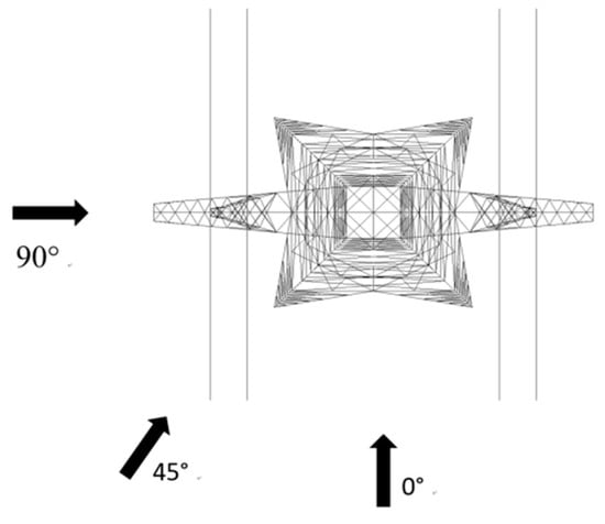 Based on the quasi-steady hypothesis and according to ASCE Guidelines [], the transverse and longitudinal wind loads of downburst wind acting on the transmission tower can be expressed as follows: