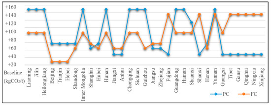 Difference of cement process carbon emission (PC) coefficient and fuel carbon emission coefficient (FC) between 31 provinces.