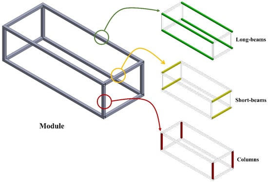 | Module Elements | Steel Grade | Yield Strength (MPa) | Tensile Strength (MPa) | Young’s Modulus (GPa) | Position Ratio | Density (Kg/m3) |