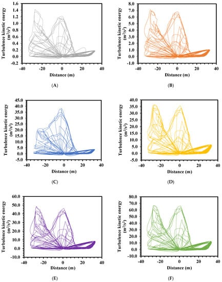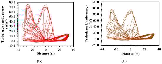 Turbulent kinetic energy (TKE) results applied on the MSC2 modular system under (A) normal, (B) tropical depression, (C) tropical storm, (D) cyclone 1st, (E) cyclone 2nd, (F) cyclone 3rd, (G) cyclone 4th, and (H) cyclone 5th wind flow loading categories.