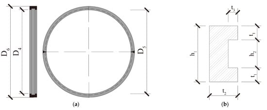 Parameters of various parts of the clamp ring: (a) side and front view, (b) sectional drawing.
