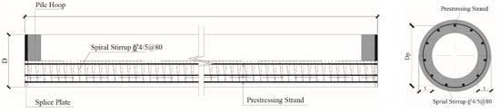 Prestressed, precast concrete piles (PPCP) have been popularized in China [1]. When there is a top layer of soft soils, they usually provide an economical and rapid building foundation. In PPCPs, prestressed strands provide the pile with the required tensile strength and avoid cracking, while high-strength concrete provides the required compressive strength. Prestressed concrete piles can be reinforced with prestressing strands such as threaded rebar, prestressing wire, and other reinforcing bars, as well as welded wire mesh [2]. The most used prestressed concrete piles in China are prestressed high-strength concrete (PHC) piles, which adopt carbon-threaded steel rods as a prestressing reinforcement. However, the application of PHC piles in seismic regions is generally restricted due to their poor bending and shear resistance and insufficient ductility [3,4,5]. In China, PHC piles can only be utilized in multi-story buildings and low-seismicity zones.
