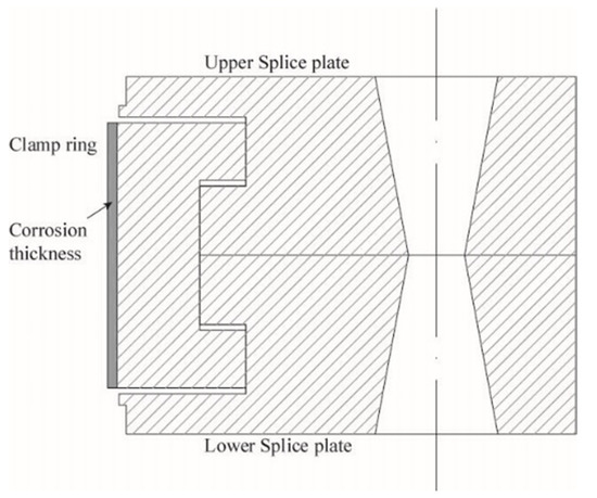 It is important to note that force analysis under tension is primarily used to estimate the detail size of the splice plate and clamp ring. Further study is required to determine whether this size can guarantee the Combination Splice’s bearing capability under a flexural moment.
