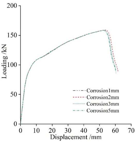 Load–displacement curves of different corrosion thicknesses.