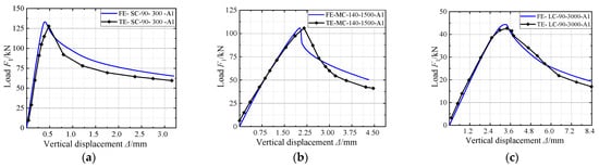 Load–vertical displacement relationship curves of the C-steel combined I-section columns (a) SC-90-300-A1; (b) MC-140-1500-A1; (c) LC-90-3000-A1.