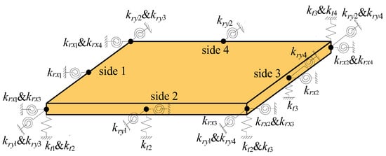 The notations of all the boundary springs are explained in Table 1. The subscript i of line spring stiffness kti denotes the number of the side where the line spring is located; the subscripts 1 and 2 of torsion springs krxi and kryi denote restrictions on normal rotations, while 3 and 4 indicate constraints on tangent rotations.