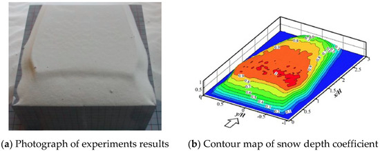 Photograph of typical experiment results and distribution of snow depth coefficient [23].