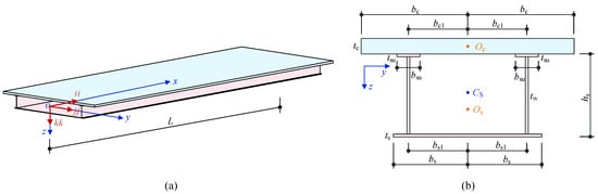 Diagrams of steel-concrete composite box-girder bridges [] (a) Three-dimension; (b) Cross-section.
