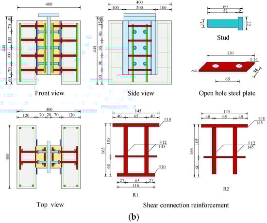- Suzuki, A.; Kimura, Y. Mechanical performance of stud connection in steel-concrete composite beam under reversed stress. Eng. Struct. 2021, 249, 113338. [Google Scholar] [CrossRef]