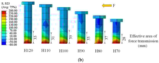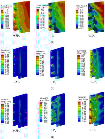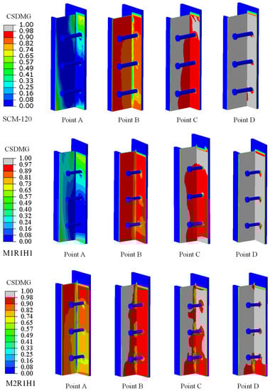 - The refined FE model, which incorporates the bonding behavior of the steel–concrete interface, was developed in order to accurately represent the load-slip behavior, damage mode, and damage evolution of PCSC connectors.