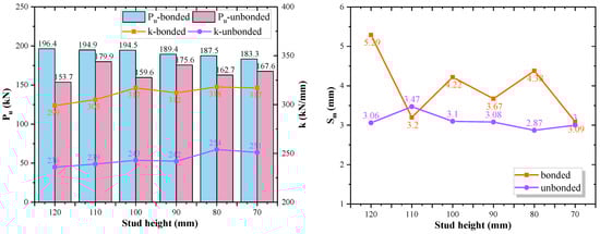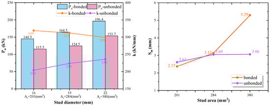 - The diameter of studs has a positive effect on the shear bearing capacity and shear stiffness. The maximum slip value of the specimen also correlated positively with the cross-sectional area of studs.