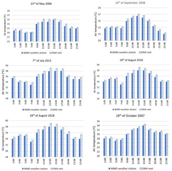 - A comparison of the ENVI-met simulated air temperature and the WMO recorded datasets showed the influence of a UHI, as the simulated air temperature for the case study varied more than the average monthly value recorded by the WMO weather station at Bahrain international airport;