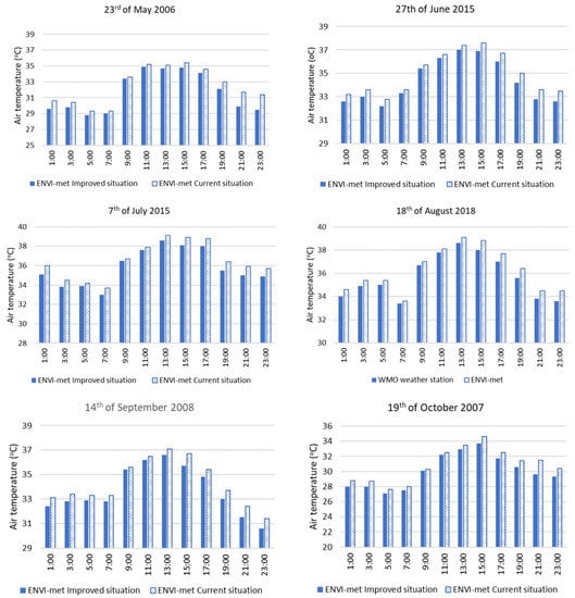 - Elnabawi, M.H.; Hamza, N.; Dudek, S. Use and evaluation of the ENVI-met model for two different urban forms in Cairo, Egypt: Measurements and model simulations. In Proceedings of the 13th Conference of International Building Performance Simulation Association, Chambéry, France, 25–28 August 2013. [Google Scholar]