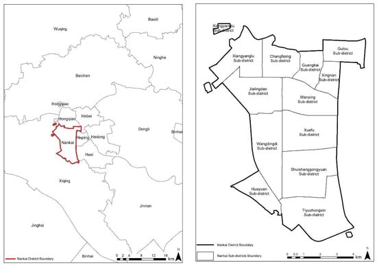 The source of the sub-district population data was the 6th China Census (2010), applied through the Nankai District Information Disclosure Platform (