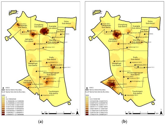 In this study, SDE was conducted separately for Nankai District residences weighted with the elderly population, and Nankai District EDCCs with the facility area as the weighting value. The standard deviation level was set to one, and the proportion of data inclusion was 68%.