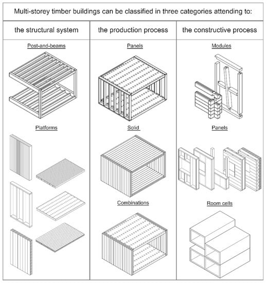 Three main categories for the classification of multi-storey timber buildings according to [,,].