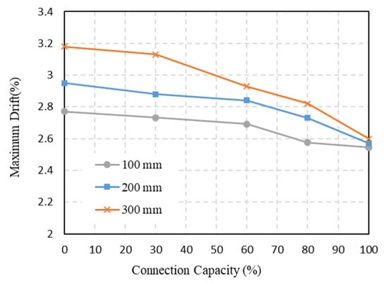 | Earthquake | Connection Capacity (%) | Steel Plate Shear Wall Hole Diameter (mm) | ||