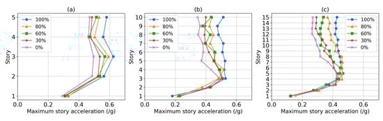 - The mid-rise frames experienced the highest story acceleration at the third floor. Moreover, by paying attention to the 2.4% inter-story drift limit as one of the most important controlling criteria, the mid-rise steel frames did not experience a significant reduction in terms of maximum story acceleration and base shear.
