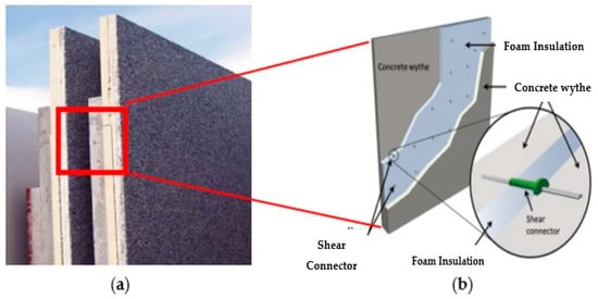 - Choi, W.; Jang, S.J.; Do Yun, H. Design properties of insulated precast concrete sandwich panels with composite shear connectors. Compos. Part B Eng. 2019, 157, 36–42. [Google Scholar] [CrossRef]