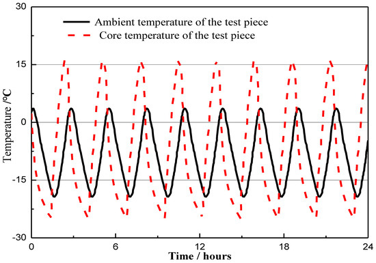 Temperature change curve during the freeze–thaw cycles.