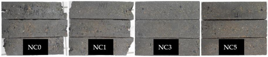 The surface erosion and failure of concrete specimens with different NMK content after 125 freeze-thaw cycles are shown in Figure 4. It can be seen that a large number of coarse aggregates are exposed on the surface of NC0 and NC1 specimens, there are many deep pits on the surface, and severe aggregate stripping occurs at the end. NC3 and NC5 specimen surface only a small amount of coarse aggregate exposed, surface pits less, no coarse aggregate stripping phenomenon; the erosion of NC5 specimen is more severe than that of NC3 specimen.