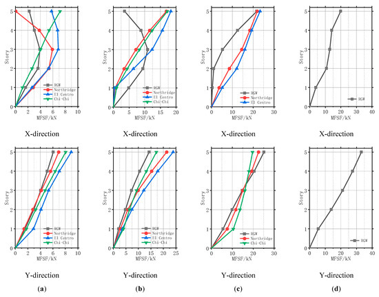 The MFSFs increased along the height of the structure, particularly in the later testing phases. Due to the so-called ‘whiplash’ effect [36], the dynamic response at floor 5 was slightly amplified when the specimen entered into the inelastic state. The MFSFs, nonetheless, were proportionally distributed along the height in most excitation cases; no weak story was formed in the tests.
