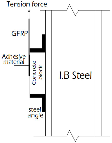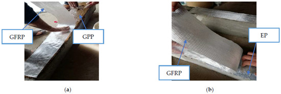 To create a new technique that can replace steels and alloys with one that is dependable, affordable, and easy to use, extensive research has been done in this area [8,9]. Therefore, using externally bonded (EB) fiber-reinforced polymer (FRP) sheets in concrete structures as a means of strengthening and retrofitting has received widespread acceptance in the industries [10,11,12]. This method involves using epoxy to bond the glass fiber reinforcement polymer (GFRP) laminates to the tension surface of RC beams. This EB technique, on the other hand, results in greater ultimate flexural strength and stiffness [13].