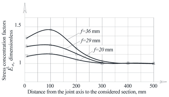 The obtained dependences of the stress concentration factor Kσ on the dimensionless joint bend depth ς and the dimensionless joint imperfection width ξ confirmed the determining influence on the stress concentration in the joint zone of its depth f. At the same time, the obtained dependences of the stress concentration factor on the joint imperfection parameters are important from the point of view of obtaining an engineering empirical calculation formula.