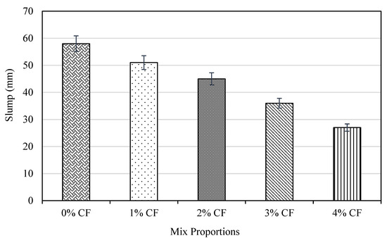 The slump of coir fiber-reinforced cement-based hybrid concrete recorded in the experiment.
