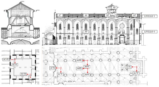 - Betti, M.; Vignoli, A. Numerical assessment of the static and seismic behaviour of the basilica of Santa Maria all’Impruneta. Constr. Build. Mater. 2011, 25, 4308–4324. [Google Scholar] [CrossRef]