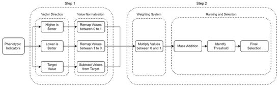 Each solution carried forward from the first stage of selection was evaluated according to the phenotypic indicators and weights listed below.