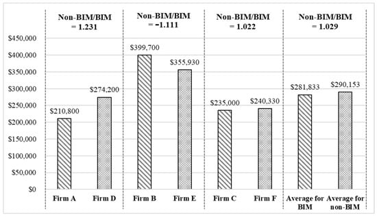 | Non-BIM Projects | Firm D | 11,000 | N/A | 259,900 | N/A | 3300 | 274,200 |