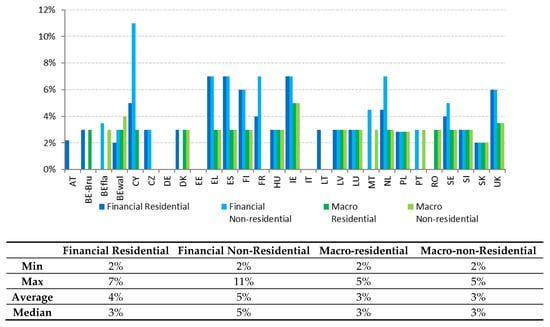 As shown in Figure 4, almost all Member States (with a few exceptions) made the same choices for the macro-economic perspective (DR = 3%), following the indication of the official Guidelines []. The picture for the financial perspective is more heterogeneous, with an average of 4% for the residential and 5% of the non-residential sector.