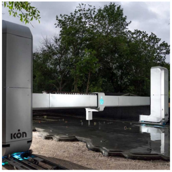 Apis Cor robotic arm printer [40]. Reprinted with permission from Ref. [40]. 2021, Jarett Gross.