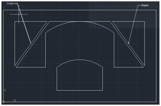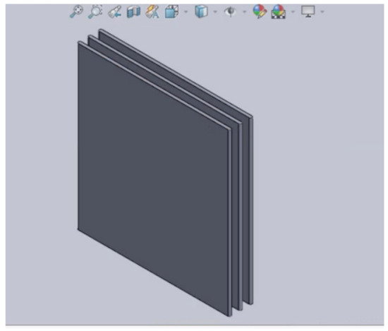 The walls printed by COBOD’s printer are used as formwork for fill material [25]. PERI’s printed hollow walls can be filled with or without vertical reinforcement (among other things, it depends on the building’s environment, use, and local codes) [24,25]. For their walls with three cavities, concrete is filled into the interior cavity [24,25]. Then, the exterior cavity of this wall is filled with insulation to improve the wall’s thermal performance [25,26]. A COBOD printer was used by the PERI Group in Germany to create a wall with staples acting as horizontal reinforcement in the wall [25]. This can be seen clearly in Figure 4, which is a SolidWorks model mimicking COBOD’s wall design, which was modeled by the authors of this paper. This model is based on the information provided by Jarett Gross.